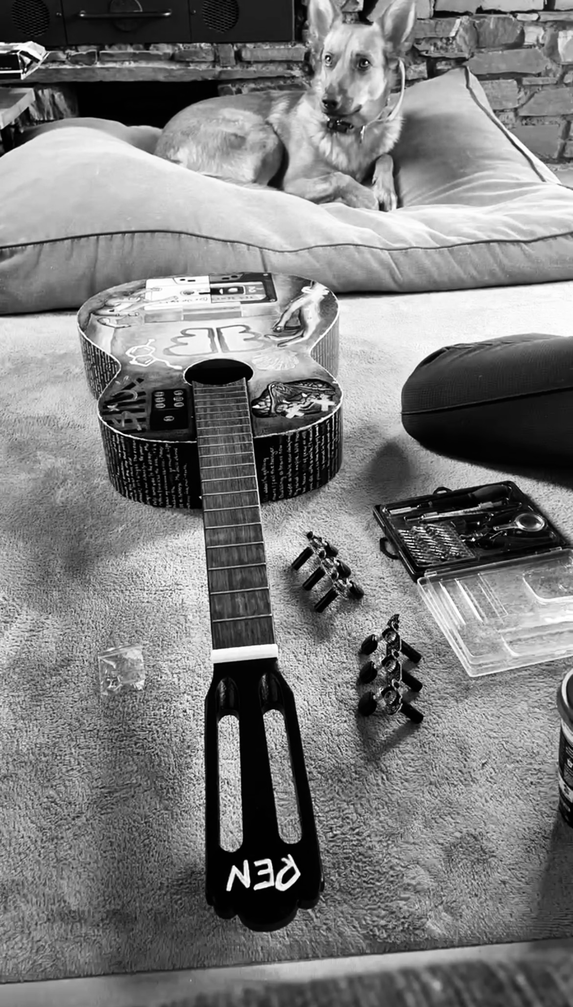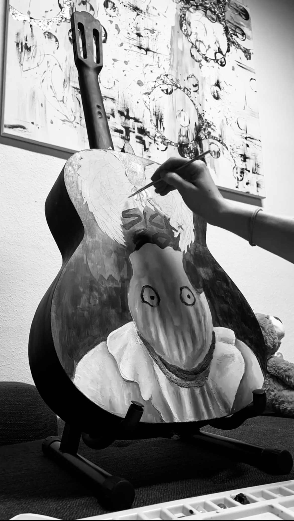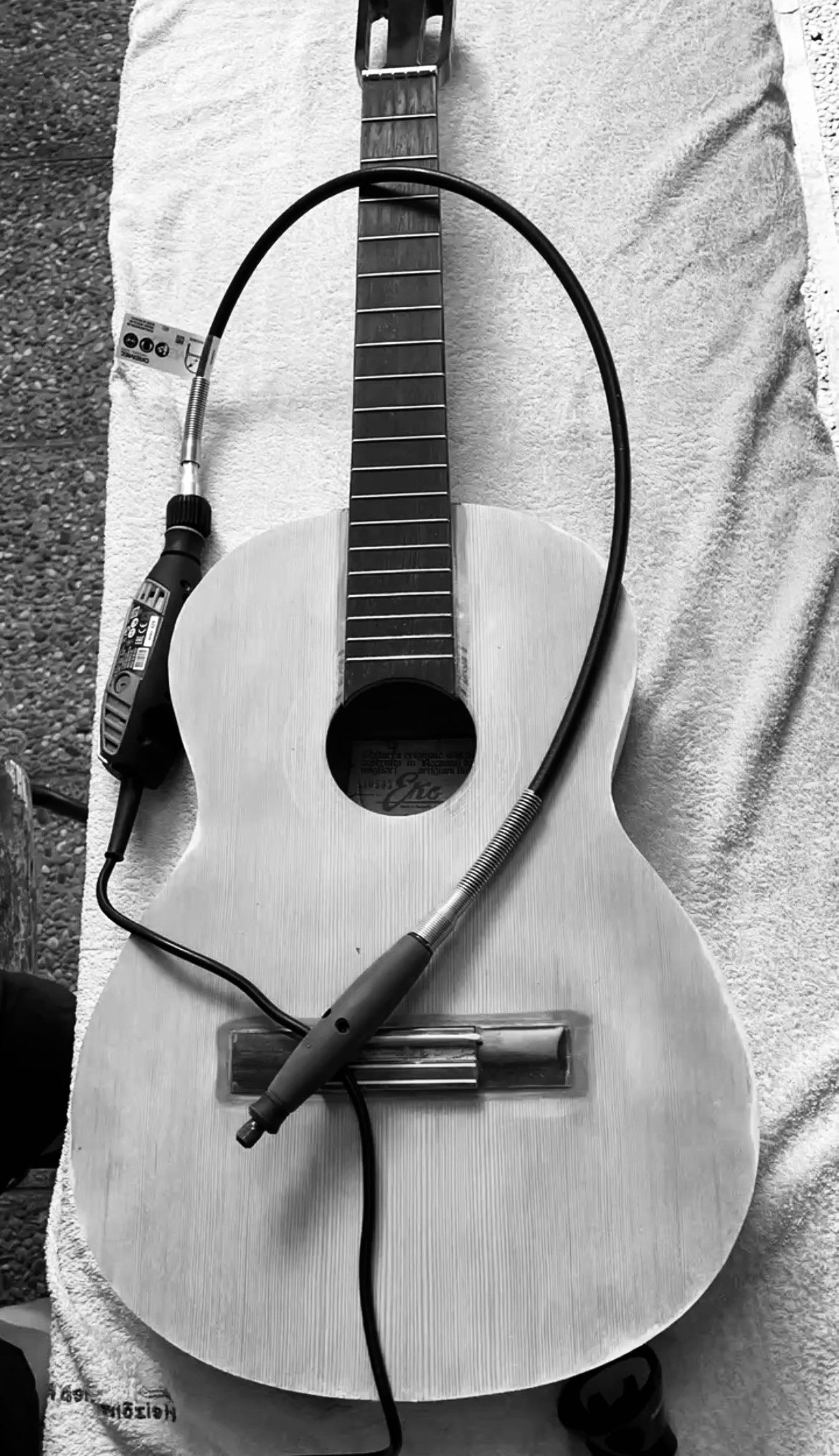 Each instrument is stripped down, drilled, reshaped, designed, painted and rebuilt by hand, layer by layer. Every transformation is documented on video in TikTok, showing the full journey from worn instrument to playable original.